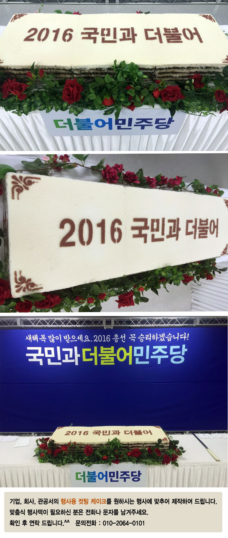 home > 맞춤떡/행사용 떡 > 더불어민주당 새해 단배식 컷팅 케이크